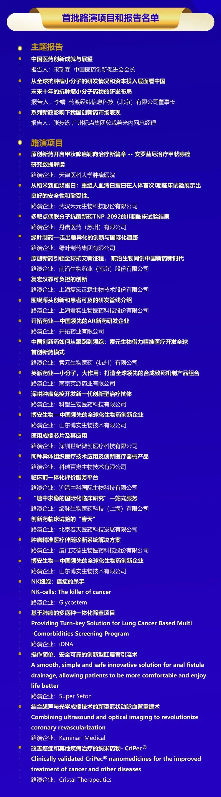 第五届中国医药创新与投资大会首批路演名单出炉