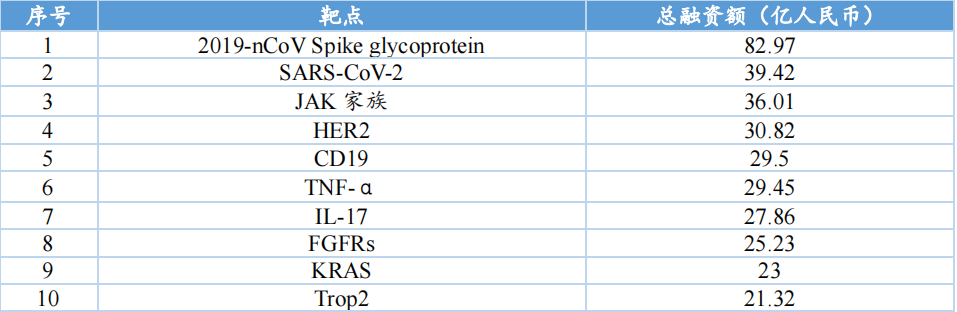 盘点|生物医药研发企业融资额 TOP10 靶点