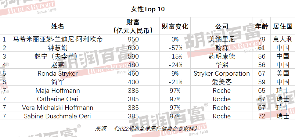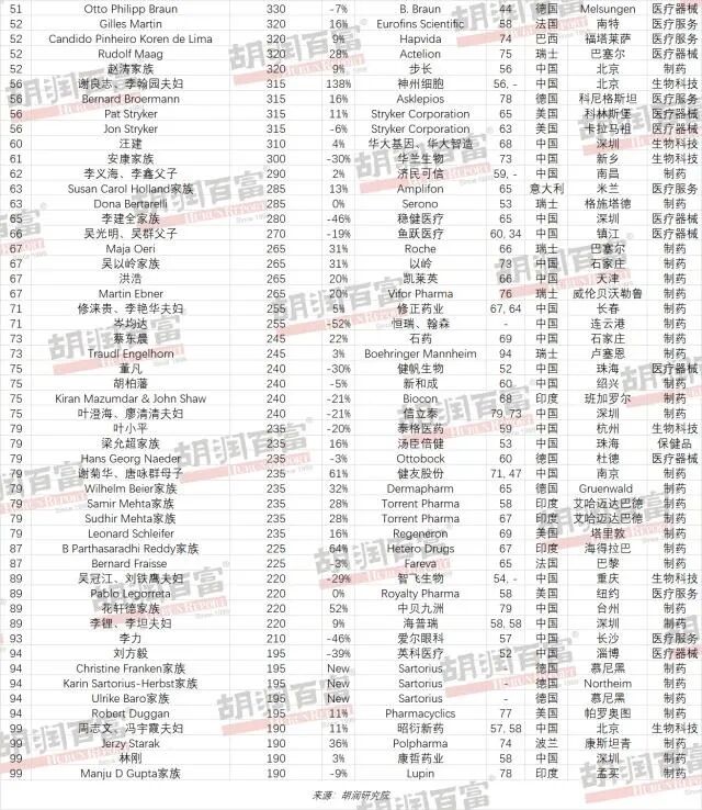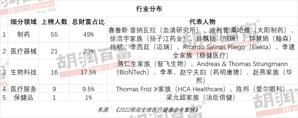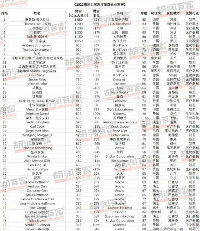 2022胡润全球医疗健康企业家榜单,中国上榜39位