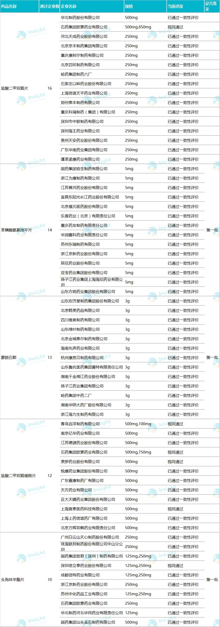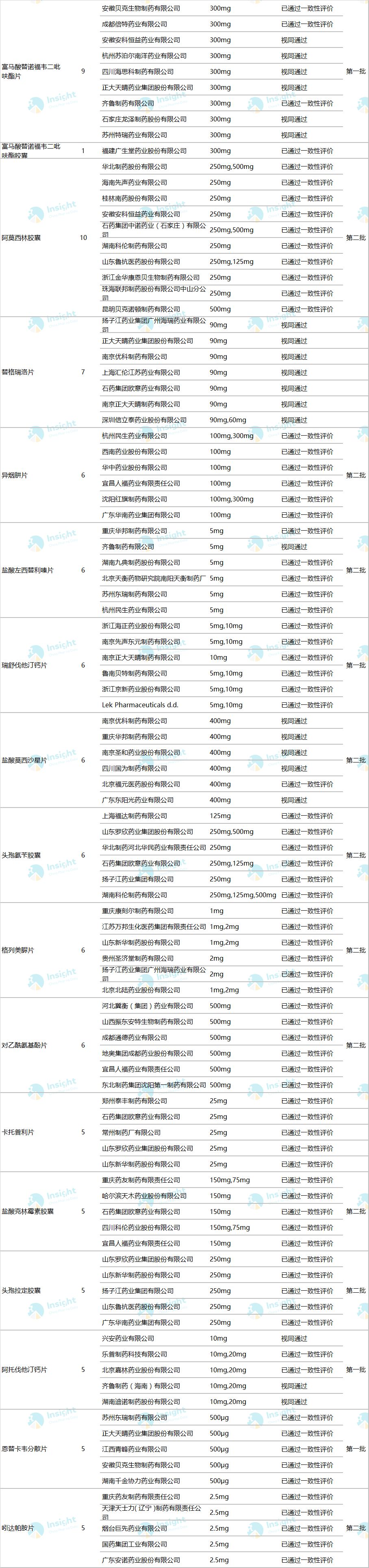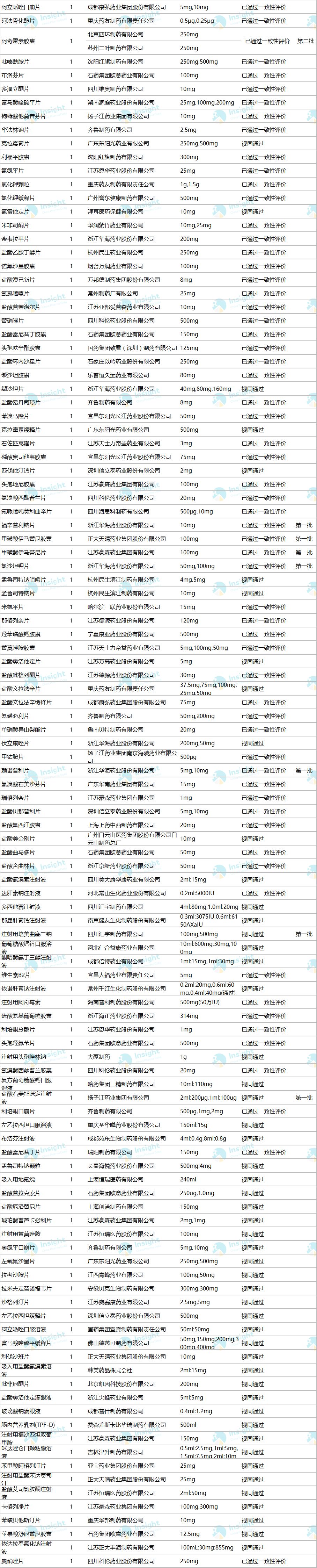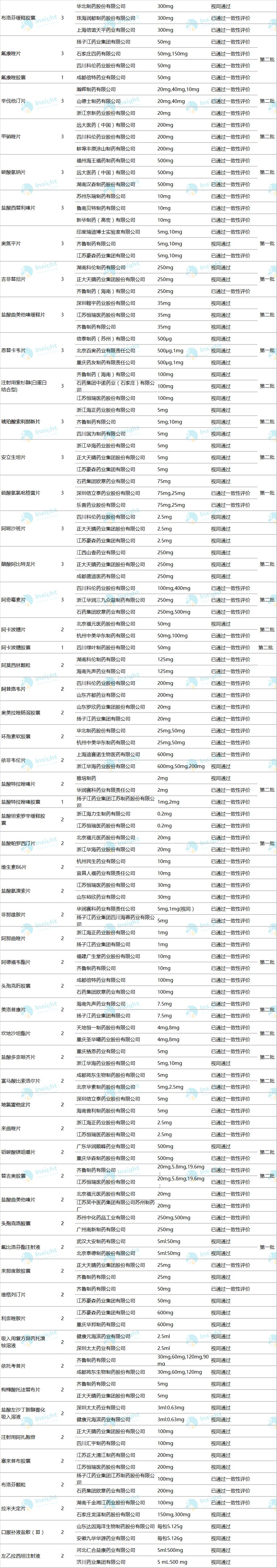 最新! 204 个品种通过一致性评价