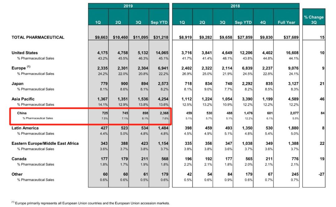 来源:医药时间、企业公告 10月29日,默沙东发布2019年Q3业绩报告,前三季度全球销售收入349.72亿美元,其中Q3销售收入为124亿美元,同比增长15%。 其中,最受关注的莫过于其明星PD-1药物Keytruda的销售数据。 意料之中,重磅炸弹! 2019年第一季度:22.69亿美元,同比上涨55% 2019年第二季度:26.34亿美元,同比上涨58% 2019年第三季度:30.70亿美元,同比上涨62% 2019年前三季度Keytruda的销售额为79.73亿美元! 以此速度预计,2019年Keytruda的年度销售额突破100亿美元大关没有一点儿悬念! 默沙东中国区业务2019年前三季度收入达到23.68亿美元,其中Q3销售收入达8.98亿美元,同比增长84%,超越日本。排除外汇的不利影响,同比增长90%。这主要受Keytruda和Gardasil/Gardasil 9的驱动。 |
