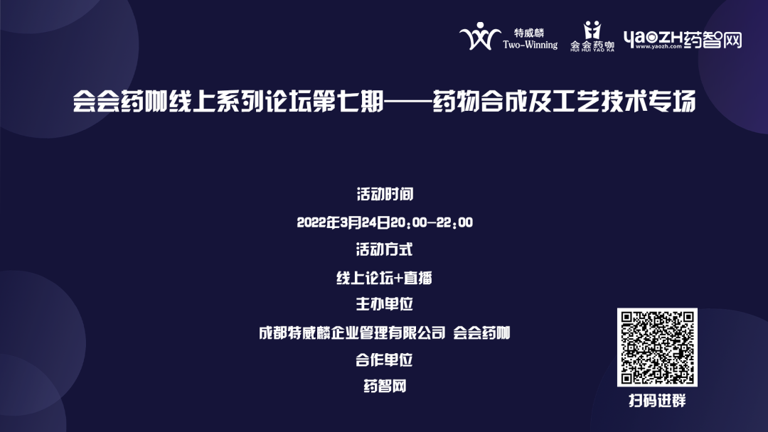 会会药咖线上系列论坛第七期—药物合成及工艺技术专场 邀您参加